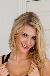 Beautiful blonde Karol Lilien teases in her long black dress. She strips showing her thong covered ass and spreads her pussy. This babe is horny so she spread open her ass and wet pussy in this set by LIL.