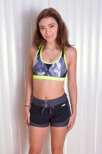 Summer Day is ready to workout. She has on her little shorts and sports bra and she wants to sweat. Watch as she stretches and strips until you can see every inch of her beautiful body.