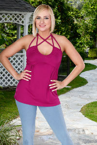 Tiffany Watson is cute in her pink top. This lovely blonde is always frisky, and happy to show off her body. She slips off her top and lets her big boobs out. You're more than happy to see them, right?